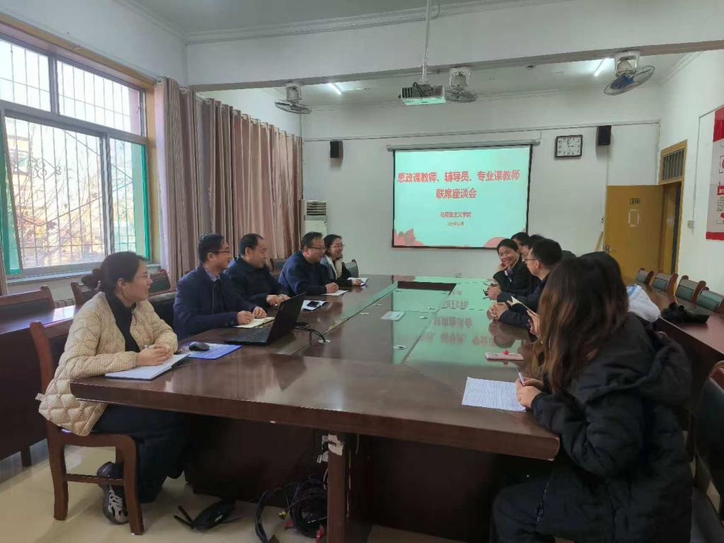 为落实辅导员、思政课教师和专业课教师联席会议制度,推进全员育人,培养德才兼备的应用型人才,日前,马克思主义学院召开思政课教师、辅导员、专业课教师联席座谈会。会议邀请公共管理学院分管学生工作的领导同志、部分辅导员老师和专业课老师出席。
